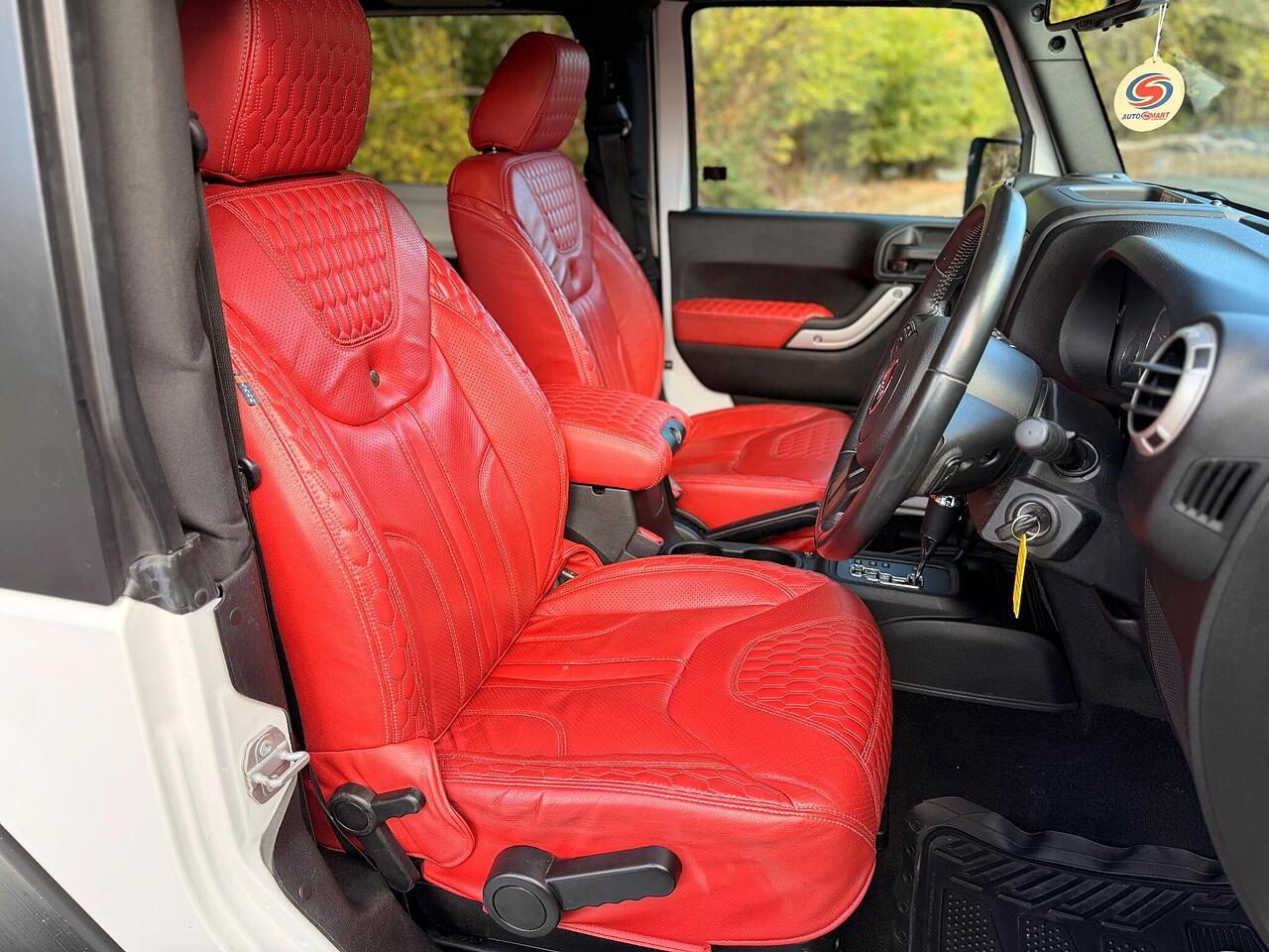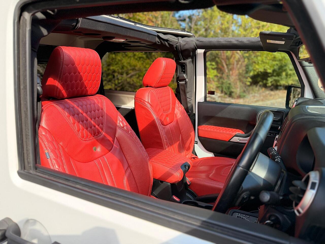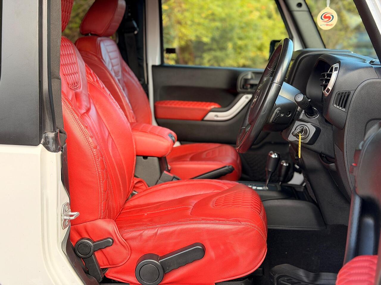This jeep wrangler has been customised by Chelsea truck co/ khans. This conversion estimates up to £15,000 including the alpine speakers, red custom leather interior, custom khan alloys and so much more. Also includes a full service history