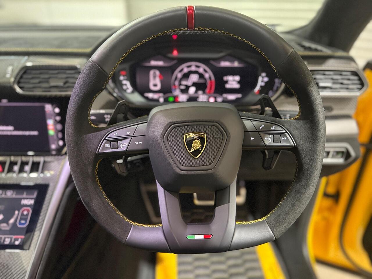 This 2024 Lamborghini Urus V8 BiTurbo Performante presents an exceptional ownership proposition with its remarkably low mileage of just 4069 miles. As a 2024 model, this Four Wheel Drive Urus is equipped with a potent 4.0L Petrol Engine and meets Euro 6 emission standards. Inside, you'll find a wealth of premium features designed to enhance every journey, including an Electric Panorama Roof offering an opening panoramic sunroof, a Head Up Display for convenient information access, and the immersive Bang and Olufsen Advanced 3D Audio System. Comfort is assured with the Automatic Dual-Zone Air Conditioning System, and connectivity is seamless thanks to the integrated Bluetooth system.
