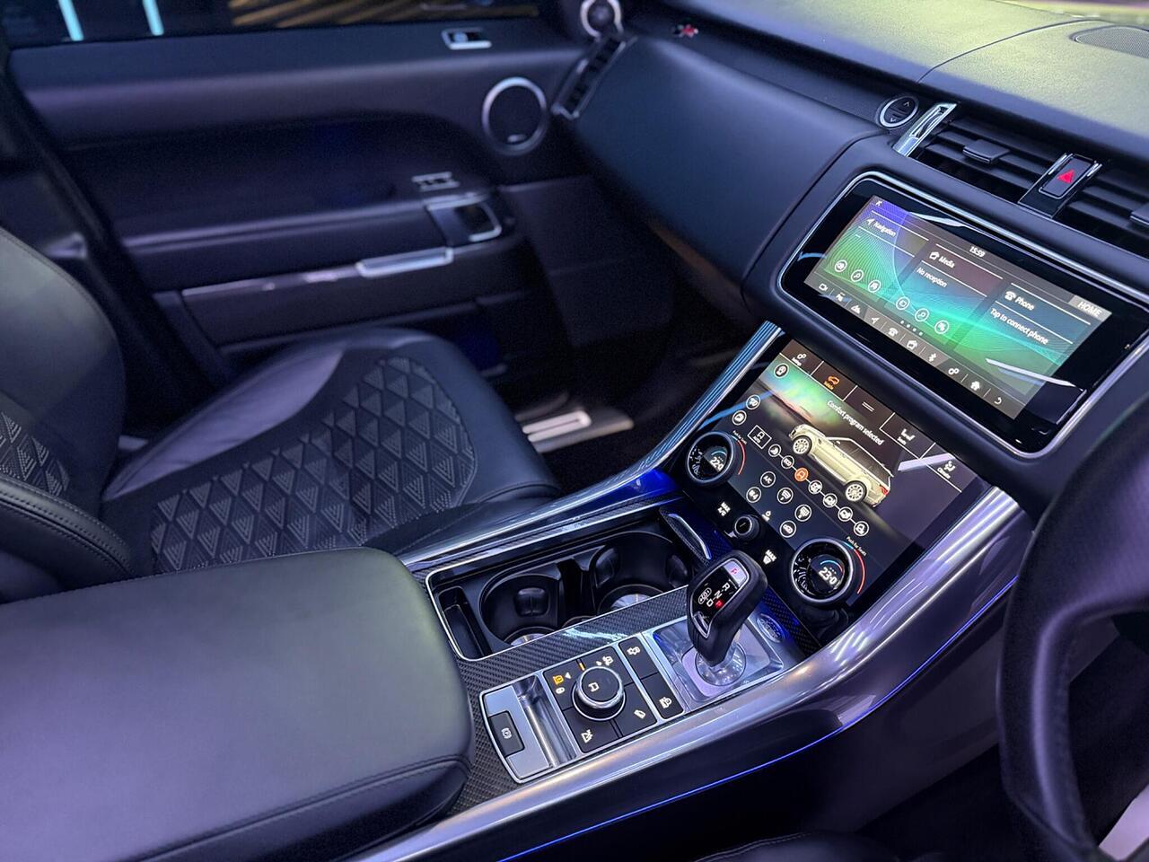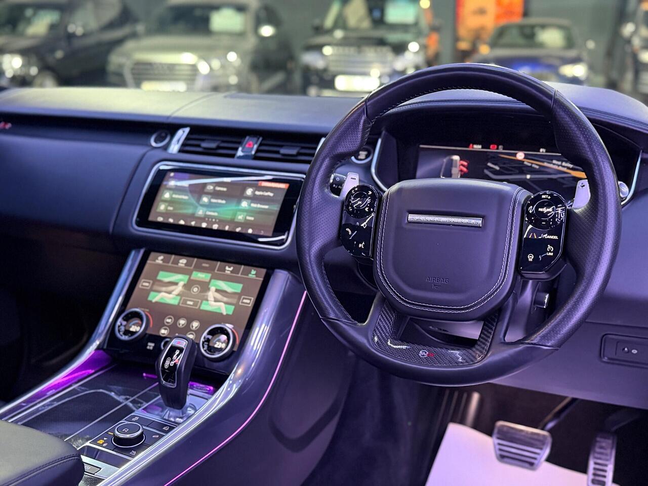 This 2020 Land Rover Range Rover Sport P575 V8 SVR Carbon Edition boasts exceptionally low mileage for its age, having covered just 32,301 miles. This Euro 6 compliant model features a powerful 5.0 litre petrol engine and a Four Wheel Drive drivetrain, offering a towing weight of 3000 kg. Its vehicle history check is clear, providing peace of mind. Notable features include a rear view camera with parking assistance, SVR performance seats with memory function, a heated steering wheel for added comfort, and Apple CarPlay for seamless connectivity. Adaptive Cruise Control with Stop and Go also enhances the driving experience.